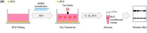 Figure 1. Schematic structure of the clearance assay of extracellular tau fibrils by BV2 cells. (Figure taken from Yoo, C. J., et al, 2024 used under license CC BY 4.0).