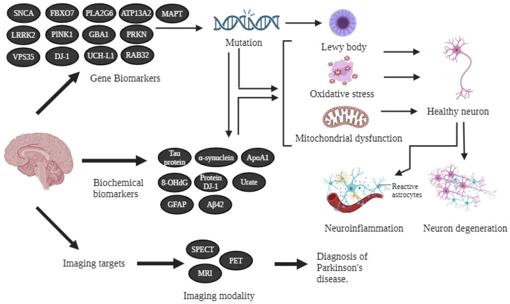Figure 1. Schematic representation of PD biomarkers from Arya et al., 2024.